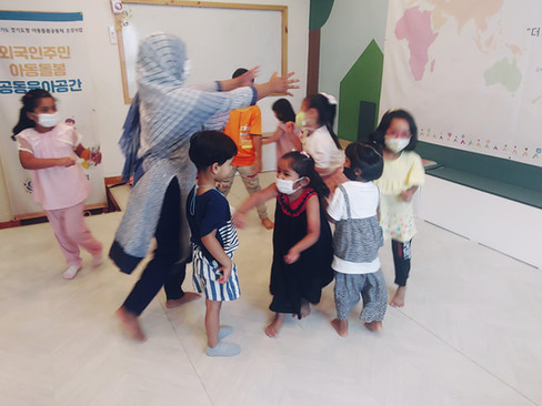 경기도의 지원으로 시작한 '경기도형 아동돌봄공동체 조성사업'으로, 외국인 가정의 3~7세 자녀를 대상으로 기초 한국어 교육을 비롯한 영어놀이, 예술, 요리, 숲 체험 등 다양한 프로그램을 진행하고 있습니다. 아이들이 어울려 놀며 공부하는 동안, 엄마들은 성인 이주민을 위한 한국어 수업을 들을 수 있습니다.